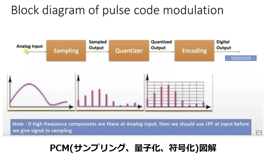 具体例 64kbps PCM(G.711, 64PCM)、デジタル電話網、IP電話 など アナログ電話回線、ラジオ放送(AM/FM)、古い有線放送 など