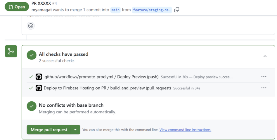 3. Actions が自動で staging にデプロイ(PRコメントにURLが付く場合あり)